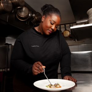 Lauréna est une jeune cheffe solaire, passionnée et dynamique. Après des études hôtelières, elle obtient sa licence en management et exerce ses fonctions d’adjointe gérante pendant deux ans en restauration collective. En 2016, elle revient à sa passion pour la cuisine, travaillant auprès de chefs étoilés comme Yannick Alléno, Rémi Chambard et Alain Ducasse.